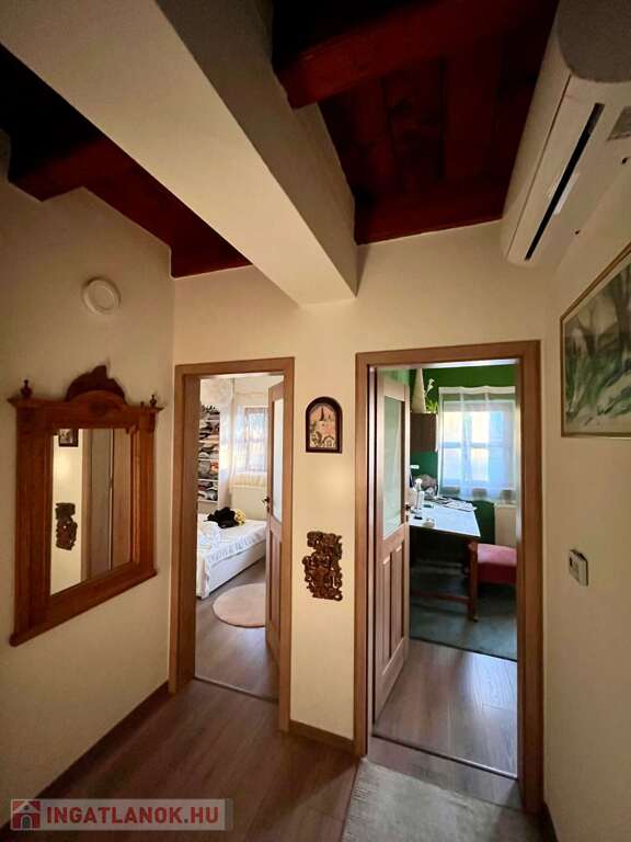 Nyíregyháza, Újkistelekiszőlőben eladó első tulajdonos által 2001-ben épített kizárólag magas minőségű anyagokból, kiváló állapotú folyamatosan karbantartott energia takarékos, repedés és vizesedés mentes szép családi ház rendezett kerttel. Az ingatlan fűtött alapterülete 126 m2-s, 38-s Porotherm téglából épült rajta 2*3 cm polisztirolgyöngy hőszigetelő vakolat a tető hódfarkú kettős fedés, három különnyíló szoba, nappali, külön konyha+étkező, fürdőszoba külön 2 db. wc., laminált padló és natur kerámia burkolat, fűtése egyedi gáz, padló fűtés, kerámia kályha és klíma a használati víz ellátás napkollektorokkal+ 200 L melegvíz tárolóval működik, három rétegű üveg 4 éves műanyag nyílászárók a ház alatt 50 m2-s pince található benne igény szerint szükséges negyedik szoba vagy tároló, wc, garázs (23,8 m2), kazánház van. A 813 m2-s parkosított teleken található még 28 m2-s nyitott terasz, kerti tároló, fúrt kút, ipari áram, riasztó. Ha ön szép igényes meghitt Rusztikus otthont szeretne ne habozzon jöjjön és tekintse meg ezt a kitűnő ajánlatot.